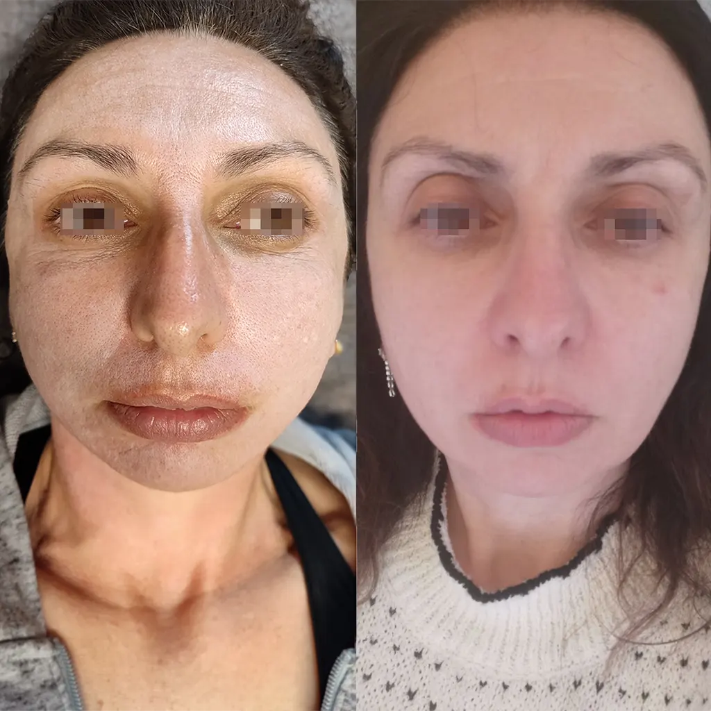 - Φαινόλη: Αποτελεί το πιο δραστικό συστατικό για βαθιά χημικά peelings. Η φαινόλη διεισδύει βαθιά στην επιδερμίδα, προκαλώντας ελεγχόμενη βλάβη που οδηγεί σε θεαματική αναγέννηση του δέρματος. Είναι ιδανική για άτομα με βαθιές ουλές ακμής, ρυτίδες ή δερματικές βλάβες από την ηλιακή ακτινοβολία. Η επούλωση διαρκεί περίπου 4 εβδομάδες, και τα αποτελέσματα είναι εκπληκτικά, με λείο και λαμπερό δέρμα.